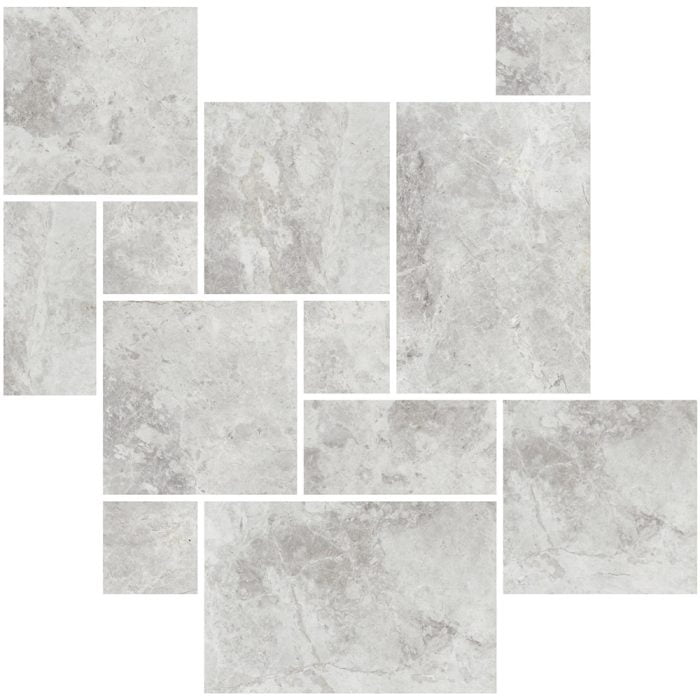 French pattern tiles feature a distinctive arrangement of different-sized tiles, creating a timeless and elegant look for both indoor and outdoor spaces. This layout, often compared to a mosaic or puzzle, adds depth and European charm while maintaining a sense of balance and sophistication. The pattern consists of a repeating sequence of four tile sizes, forming a geometric design that enhances visual interest. Available in a variety of colors and materials, French pattern tiles can be tailored to suit rustic, modern, or classic aesthetics. With narrow grout lines for a seamless finish, this style effortlessly elevates any space.