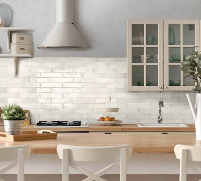 Subway tiles feature a clean, classic design, often arranged in a brickwork pattern. Made from ceramic or porcelain, they are popular for kitchens, bathrooms, and commercial spaces. Available in various colours and patterns like herringbone or chevron, subway tiles are easy to clean and maintain.